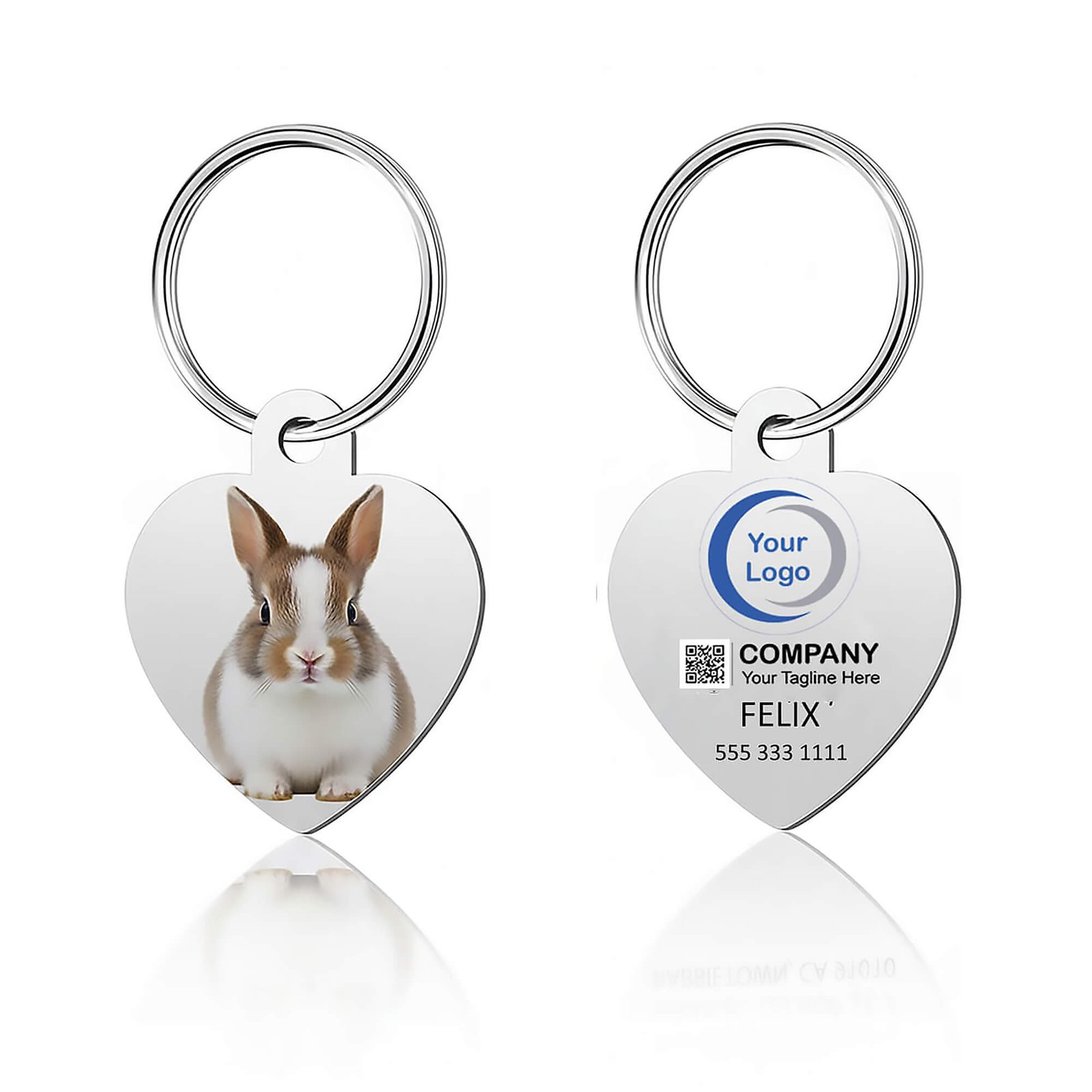 «Demuestra tu amor y protege a tu fiel compañero con nuestra placa de corazón personalizada. Foto a full color y datos de contacto en un diseño resistente. ¡Seguridad con mucho corazón!»